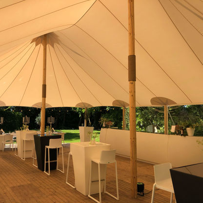 The Sailcloth Tents from Qtents are supplied with closed or transparent side walls, made of 100% waterproof coated sailcloth. This cloth is exceptionally light and strong with high tear resistance. With treatments against mould or algae and protection against UV radiation, these tents provide maximum protection in all weather conditions. The canvas look gives an authentic character.